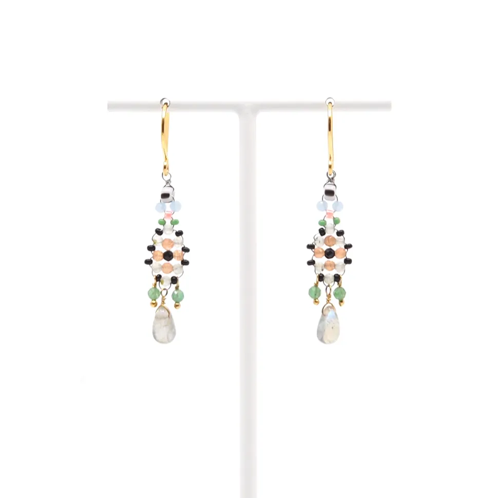 AX – oorbellen met labradoriet, kwarts en glasparels
