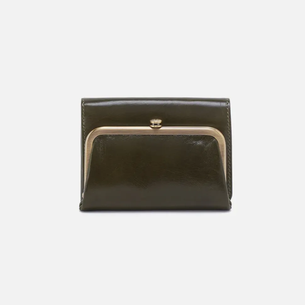 Deze vintage inspired, leren portefeuille sluit met een knijpsluiting en deels met magneten. Door zijn kleiner formaat blijft de portefeuille compact en toch kan je er alles in kwijt.