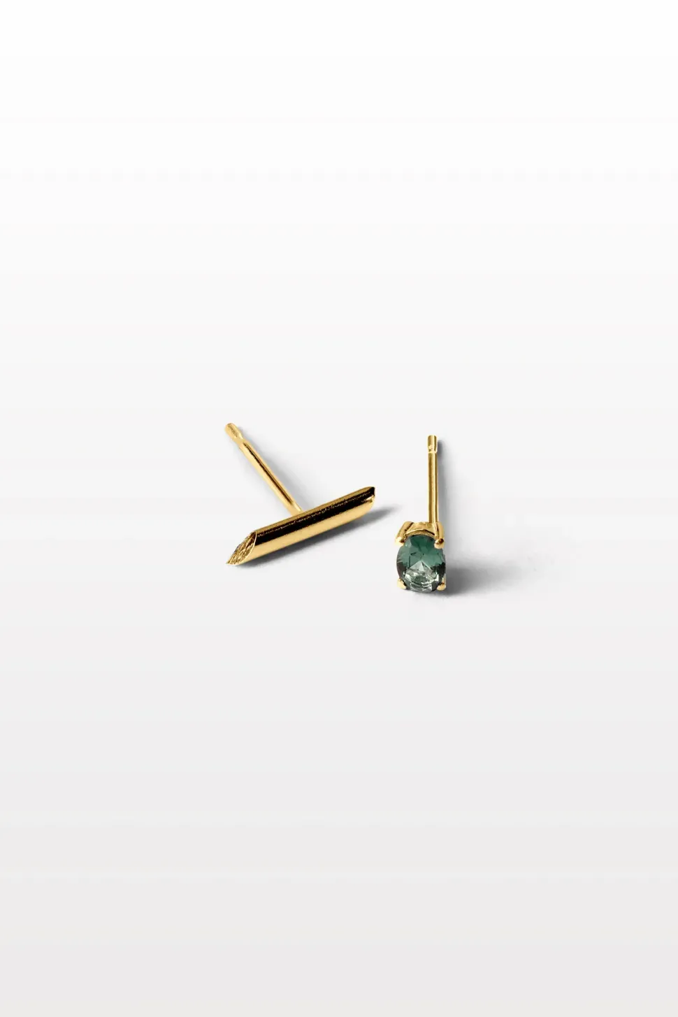 Asymmetrische oorbellen die allesbehalve simplistisch zijn. Een cilinder en een kleine ovaalvormige toermalijn geven het stuk een unieke look.