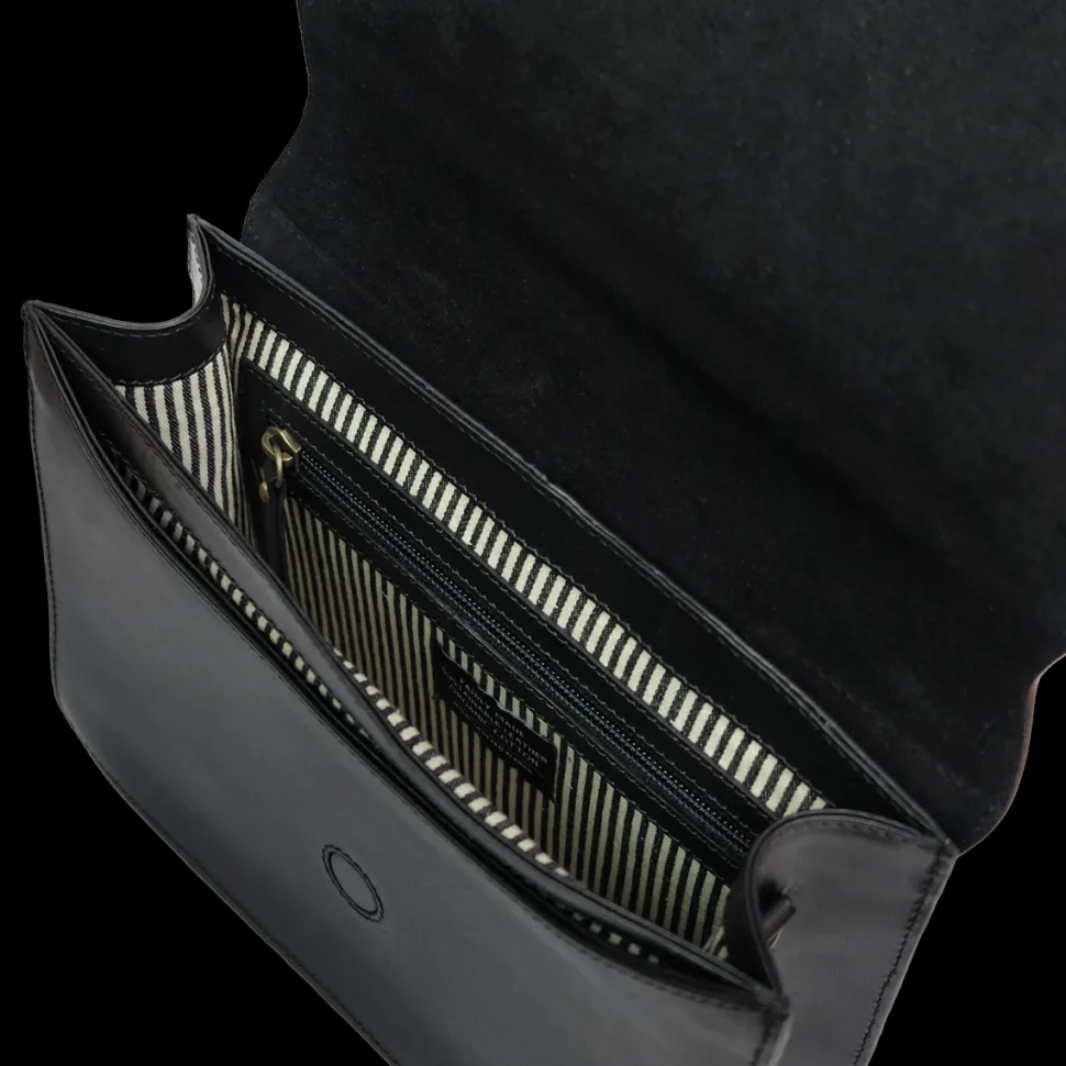 De tas komt in 2 riemen, een zwart/witte webbing riem en een eenvoudige lederen riem. De magnetische sluiting zit in de binnenvoering van de tas voor optimaal comfort.