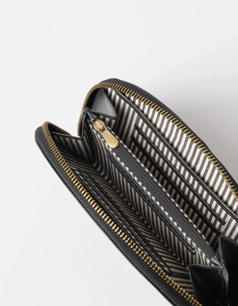 Stap in de wereld van Blake, waar organisatie en elegantie versmelten. Het ruime interieur herbergt een ritsvak voor munten, acht kaartsleuven en twee biljet compartimenten – zelfs voor sentimentele snippers papier.