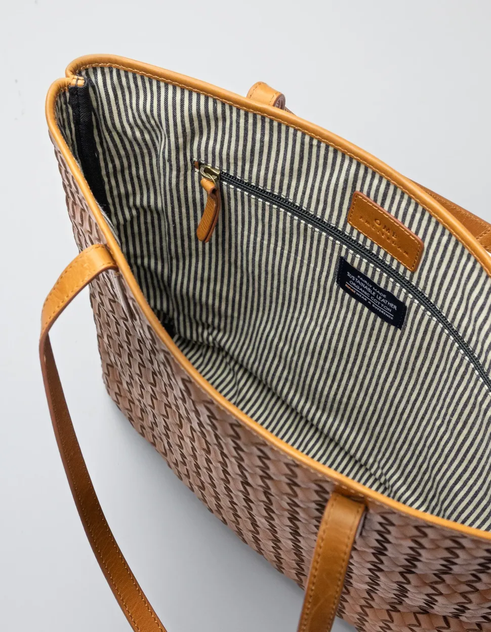 Of je nu boodschappen doet of een strandpicknick plant, deze draagtas is een elegante en klassieke shopper die ontworpen is om bij elke gelegenheid te passen. De binnenkant van de tas is uitgerust met een vak met rits en twee vakken.