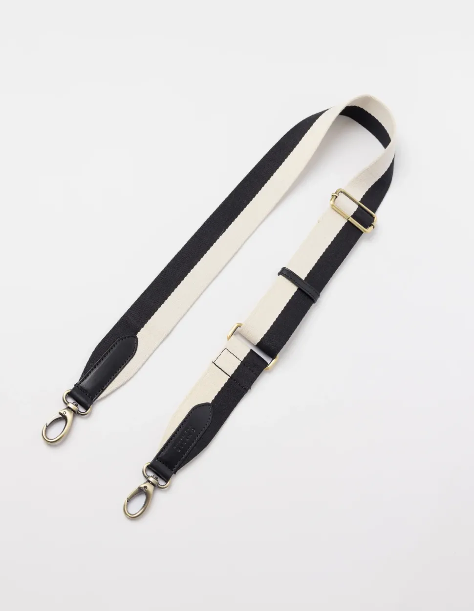 Transformeer je handtas met onze gestreepte singelband van GOTS-gecertificeerd gerecycled katoen en glad klassiek leer. De tweekleurige witte en zwarte kleur past bij elke outfit en maakt het statement waarnaar je op zoek bent. Handige hondenhaken zorgen voor een moeiteloze verwisseling. Voeg deze riem toe aan elke tas, onze favorieten zijn Audrey en Bobbi Midi