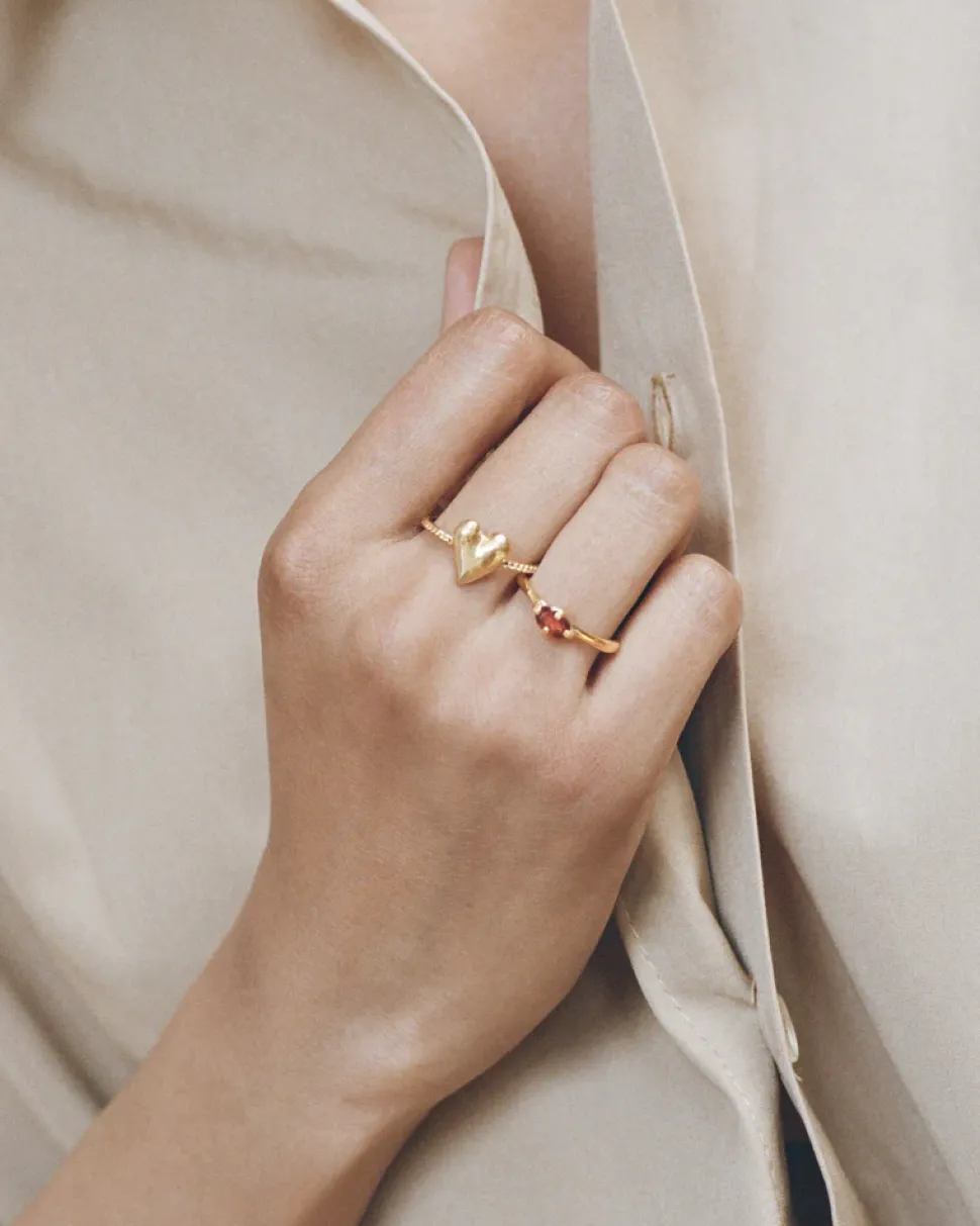 De organische vorm van de ring is een uiting van Wouters & Hendrix’ liefde voor het onvolmaakte, terwijl het rood van de granaat de liefde symboliseert. The Tell-Tale Heart’ collectie gaat over liefdessymbolen en wat ze vertegenwoordigen.