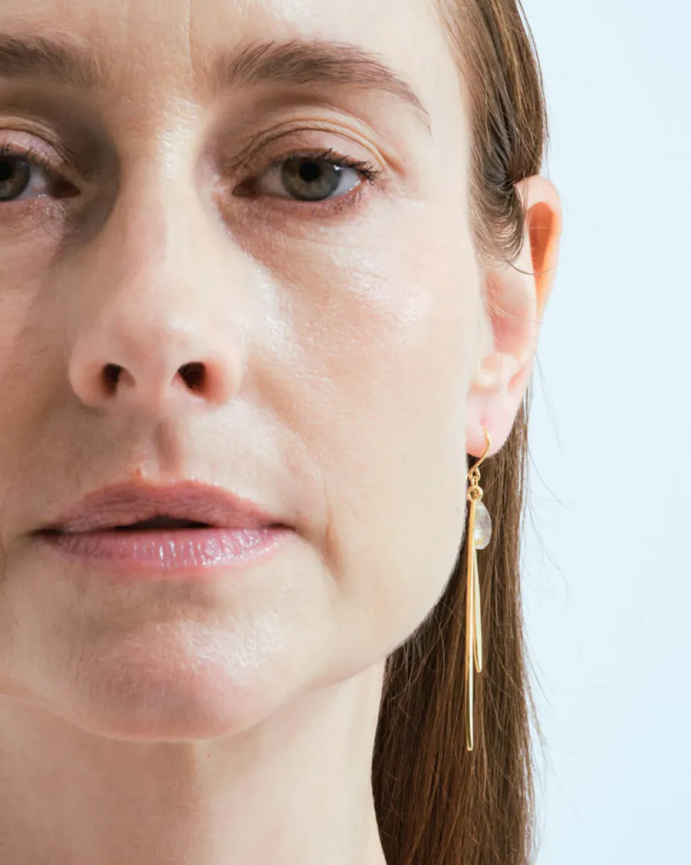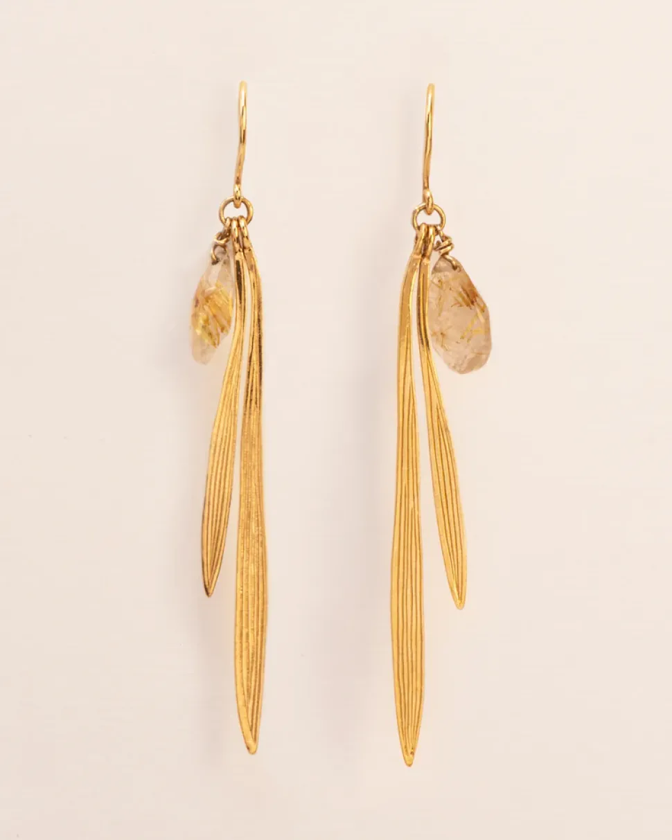 Wouters&Hendrix – oorbellen met bamboo blaadjes en rutielkwarts