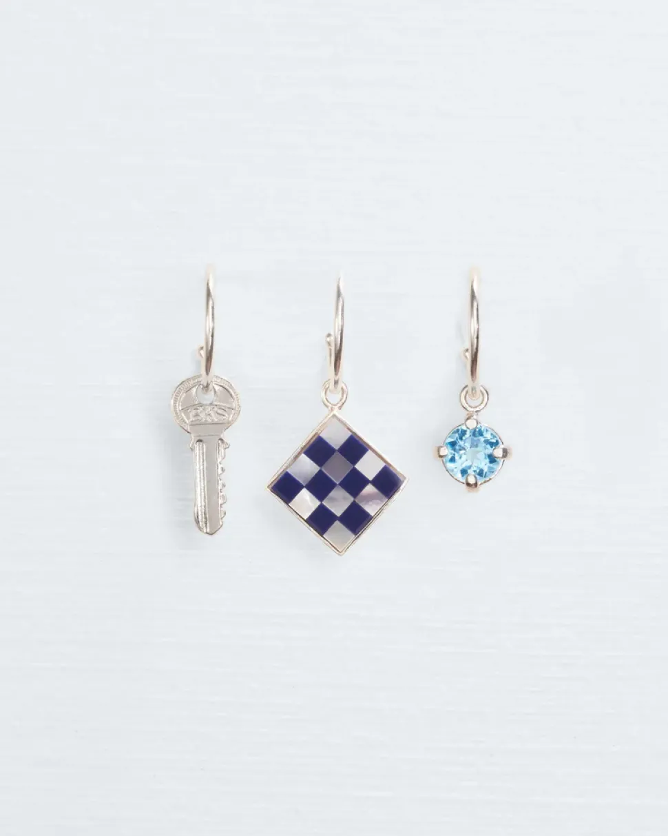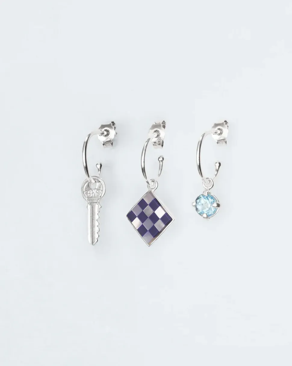 Wouters&Hendrix – oorringen set van 3 met sleutel, blauwe topaas en mozaïek
