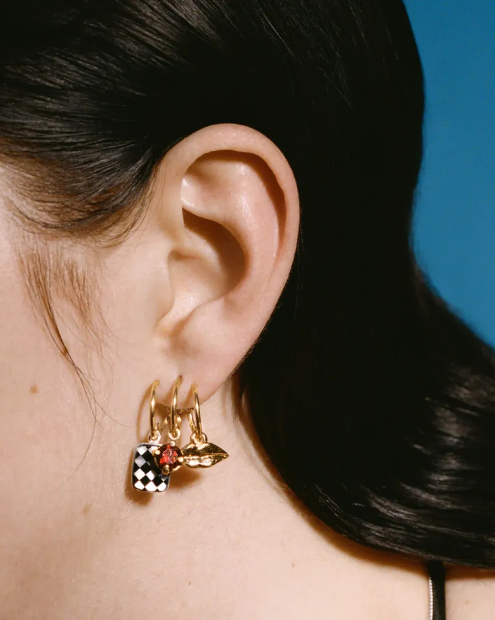 Het idee van deze oorbellen is gebaseerd op het trompe l’oeil-effect door gebruik te maken van de dubbele hoepels. Eén juweel dat op twee lijkt. Terwijl het knipoogt naar het surrealisme, belichaamt de collectie ‘La Fête des Bêtes’ alles waar Wouters & Hendrix zo dol op is. En net als in het surrealisme is de betekenis achter de ontwerpen en symbolen uit deze collectie voor de drager om te interpreteren en zich eigen te maken.