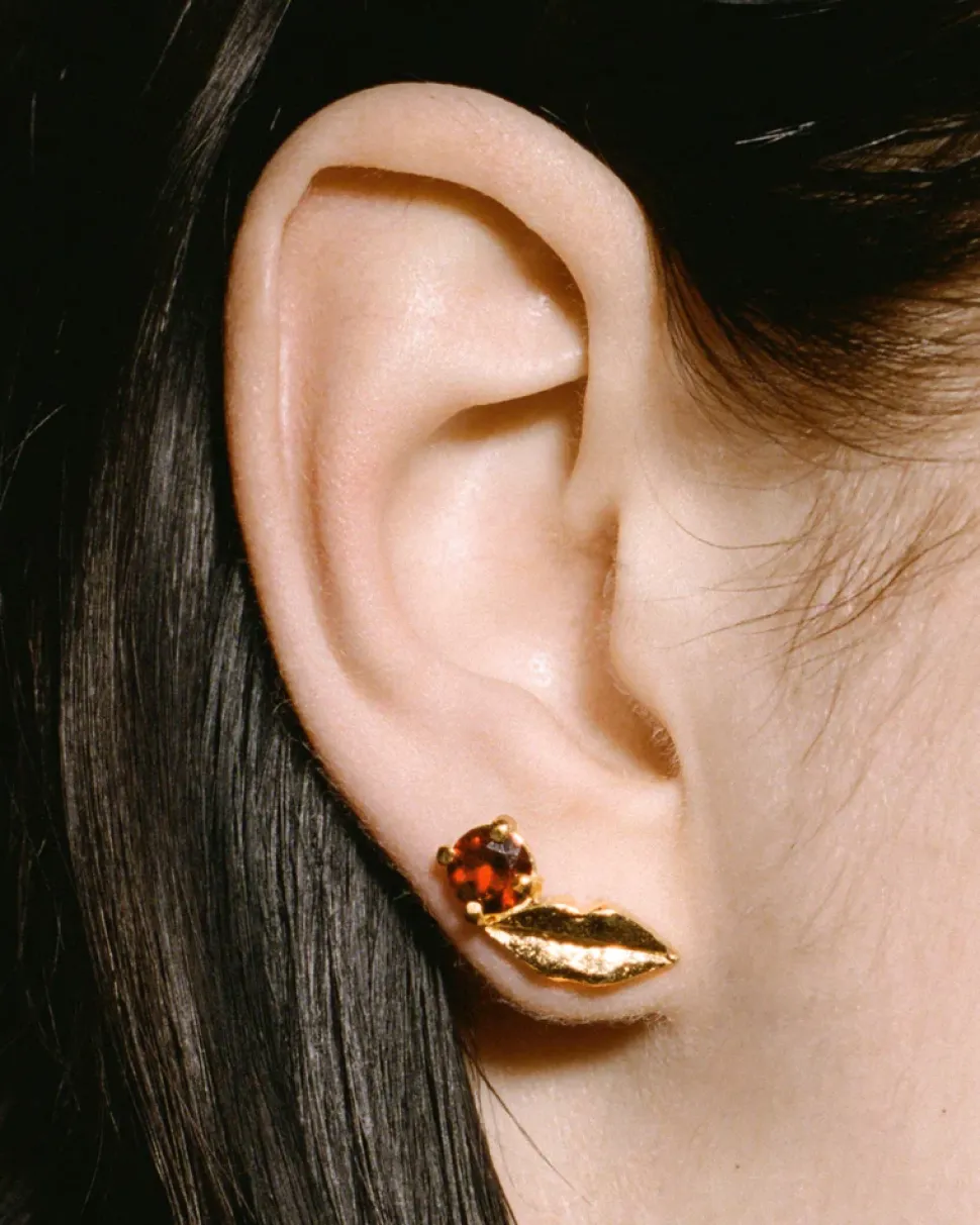 Wouters&Hendrix – trompe l’oeil oorringen met lip, mozaïek en granaat