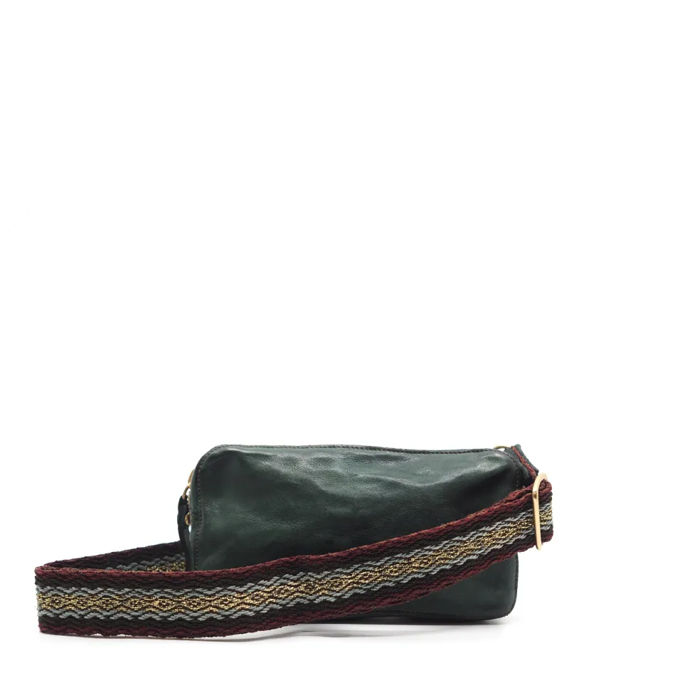 Campomaggi – phone case handtas green bottle met kleurrijke riem