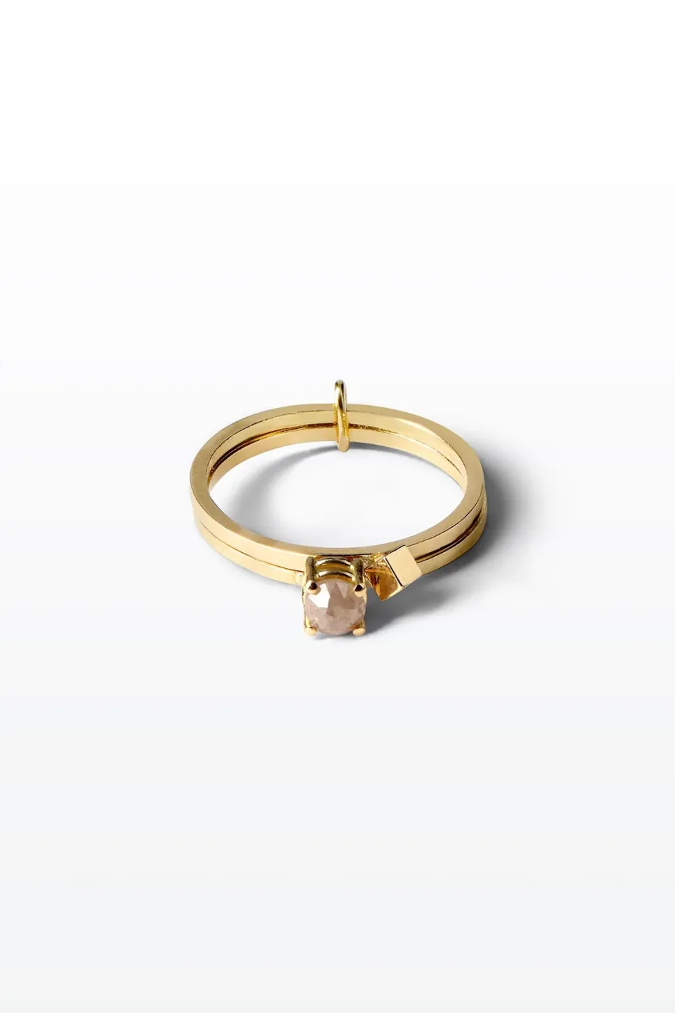 Lore Van Keer – dubbele 18K gouden ringen met witte diamant en cubic add on