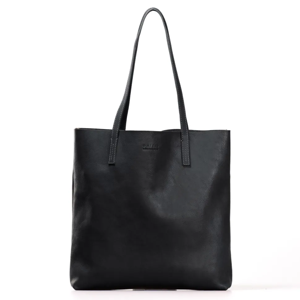 Deze tote is oneindig handig: of je nu boodschappen doet of gaat lunchen in de stad….Het binnenste van deze tote bestaat uit een katoenen zak dat kan afgesloten worden met een rits. Op die manier zijn je spullen veilig. Links en rechts van de katoenen zak zijn er nog 2 grote compartimenten. De tas is tevens geschikt voor een laptop van 13 inch. De tas werd handgemaakt met plantaardig gelooid leder.