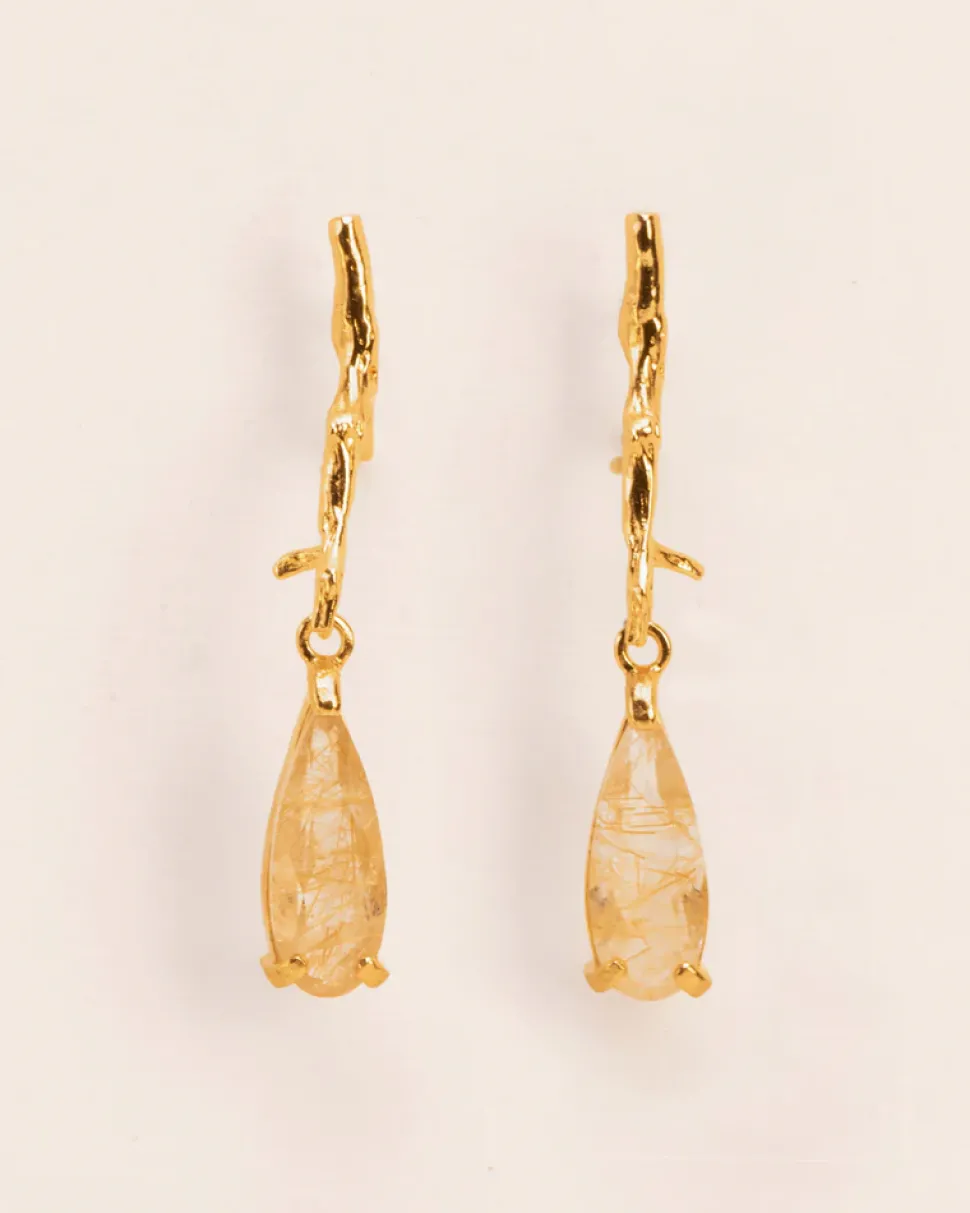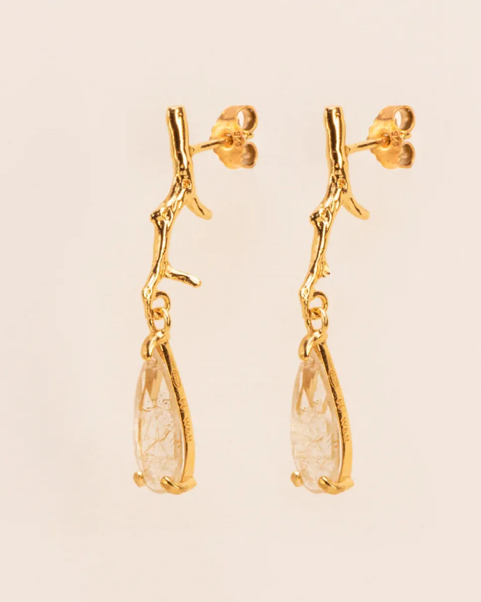 Wouters&Hendrix – oorbellen met tak structuur met rutielkwarts